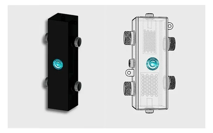 Гидравлическая стрелка совмещенная с коллектором Север Компакт+. Устройство номинальной мощностью 50 кВт имеет 5 контуров отопления.