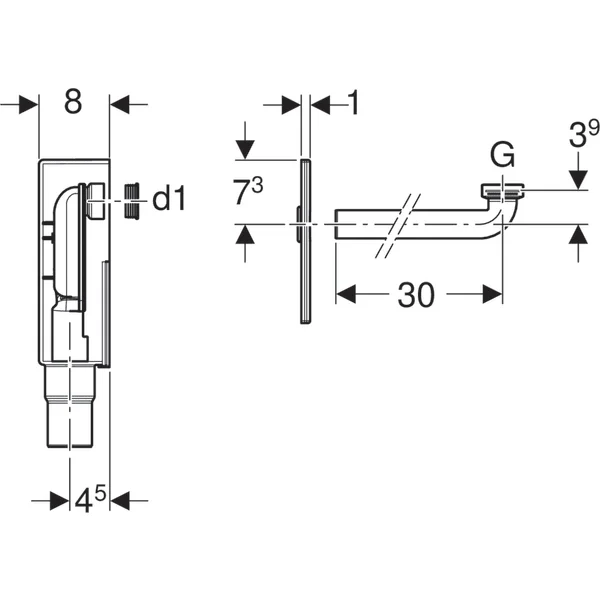 - При завершающем монтаже внутристенный сифон регулируется по высоте ± 3 см
