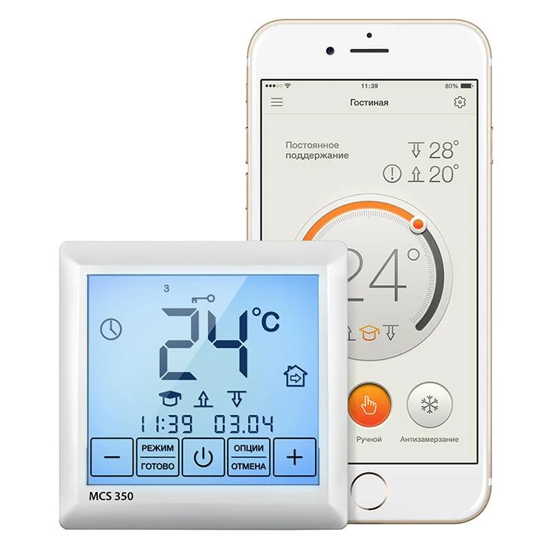 Терморегулятор обеспечивает управление по двум датчикам температуры: пола и воздуха, как одновременно, так и по отдельности (входят в комплект поставки). Терморегулятор поддерживает комфортную температуру обогреваемой поверхности и обеспечивает рациональный расход электроэнергии.