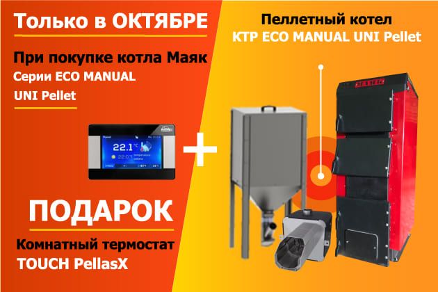 При покупке котлов Маяк серии КТР ECO MANUAL UNI Pellet - комнатный термостат в подарок! Уточняйте подробности у менеджеров компании.