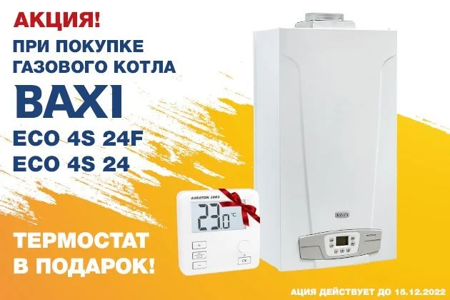 При покупке газового котла Baxi Eco 4S 24/24F – термостат в подарок!
