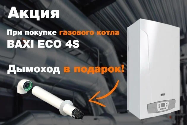 При покупке газового котла Baxi Eco 4S – дымоход в подарок!