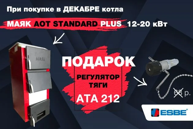 В преддверии новогодних праздников, мы запускаем АКЦИЮ и дарим регулятор тяги ESBE ATA 212 при покупке котла МАЯК AOT STANDART PLUS 12-20 кВт.