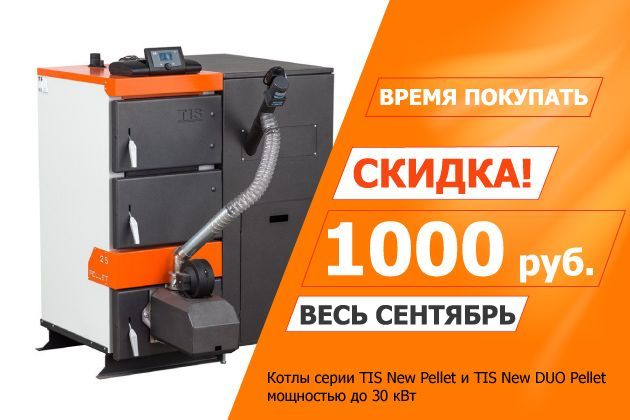 Успей ВЫГОДНО купить свой TIS. Скидка целых 1000 руб. на покупку пеллетных котлов серии TIS New Pellet и TIS New DUO Pellet до 30 кВт.