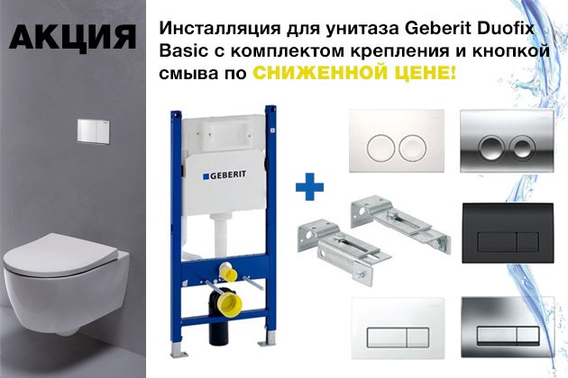 Не упустите заманчивое предложение. Воплощайте в реальность дизайнерский проект с помощью инсталляций Geberit. Приобретайте надежную и современную инсталляцию Geberit Duofix Basic для Вашего санузла по выгодной цене!