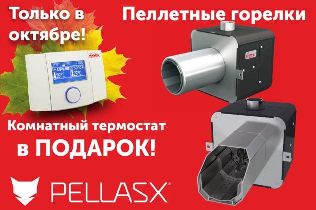 Только в октябре с 01.10.2019 по 31.10.2019 приобретите любую пеллетную горелку PellasX и в качестве подарка заберите новый и многофункциональный комнатный термостат PellasX стоимостью 227 бел. рублей!